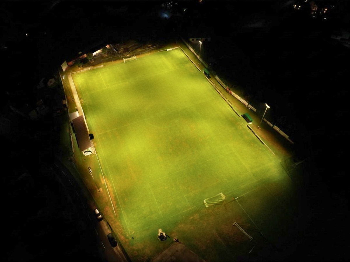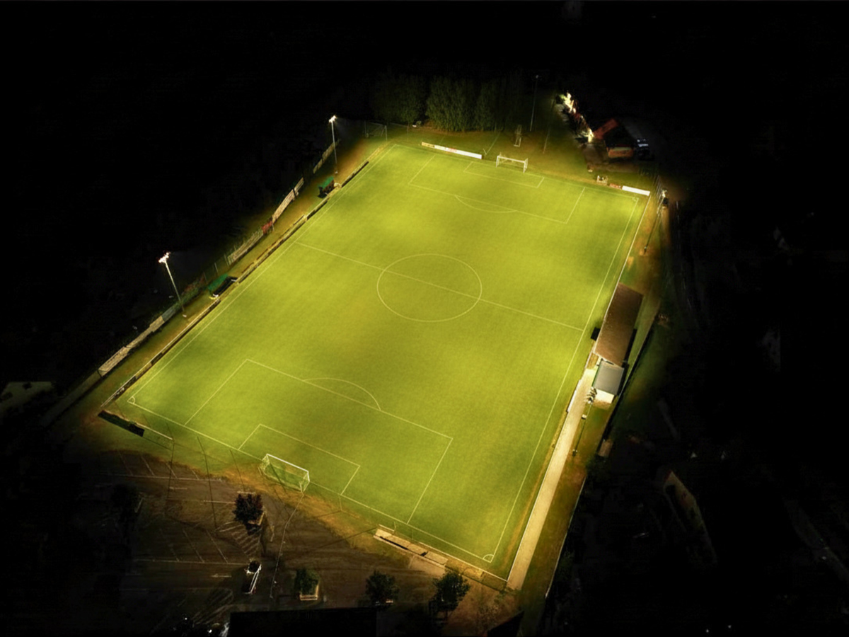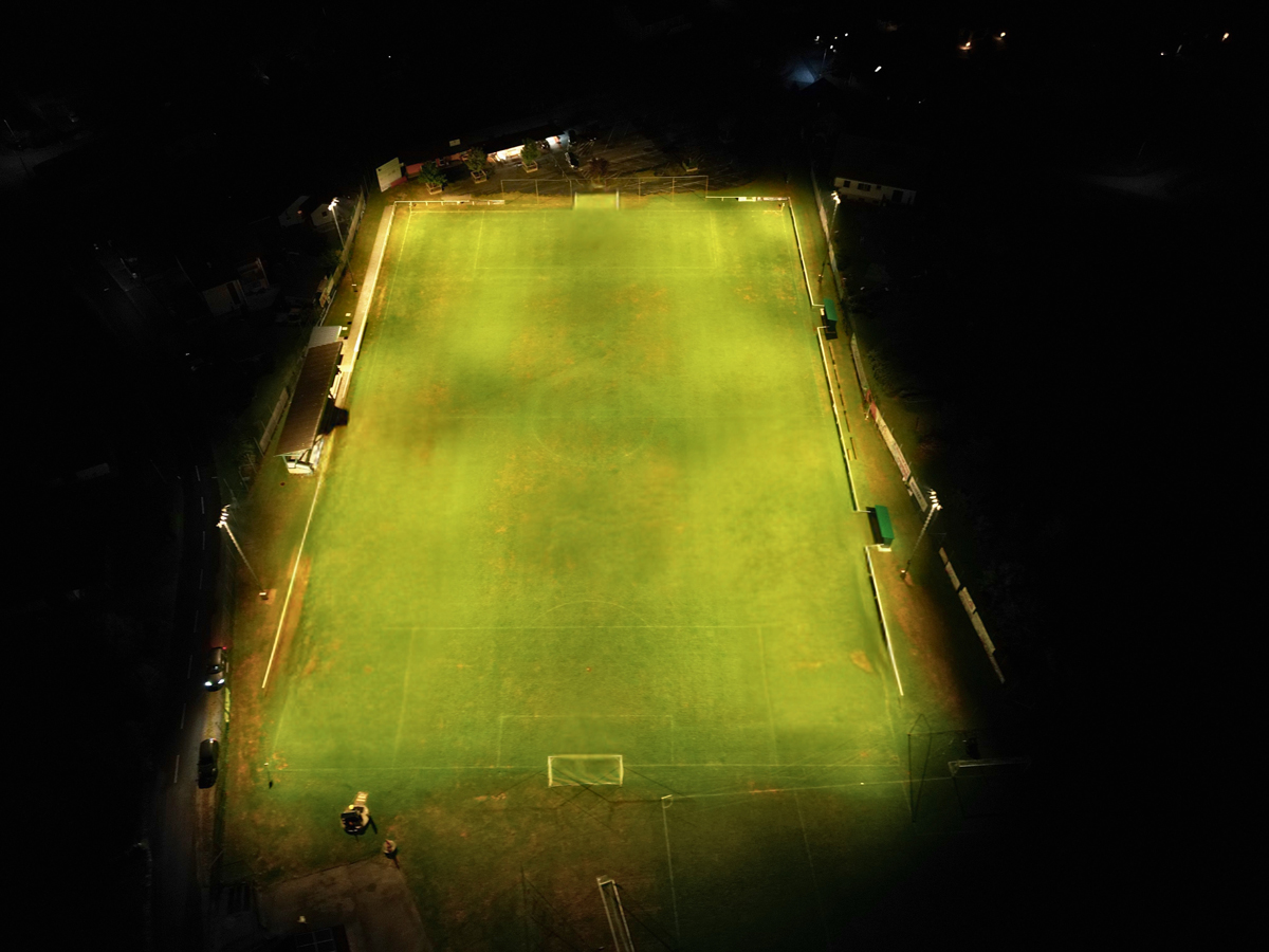 With an illuminance of 200 lux, the new COB LED floodlight system provides ideal conditions for games and training at a competitive level. Players benefit from uniform lighting across the entire playing field and perfect visibility. During the planning and implementation of the project, special care was taken to minimize light emissions. Thanks to the DLC (Direct-Light-Control) shading system, the light is directed precisely where it is needed – onto the playing field. At the same time, nearby residents are protected as much as possible from stray light.